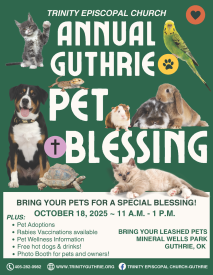 : Annual Guthrie Pet Blessing, Mineral Wells Park, 11:00a.m.-1:00p.m.